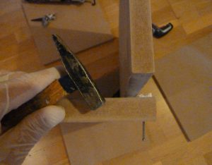 The long-awaited moment: the last glue-nail of the final wood plate!
