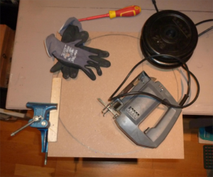 On peut se permettre de sortir la scie sauteuse, car il y a une autre planche par dessus
