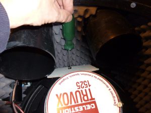 Si le tourne vis glisse (attention!) la membrane du haut parleur serait protégée