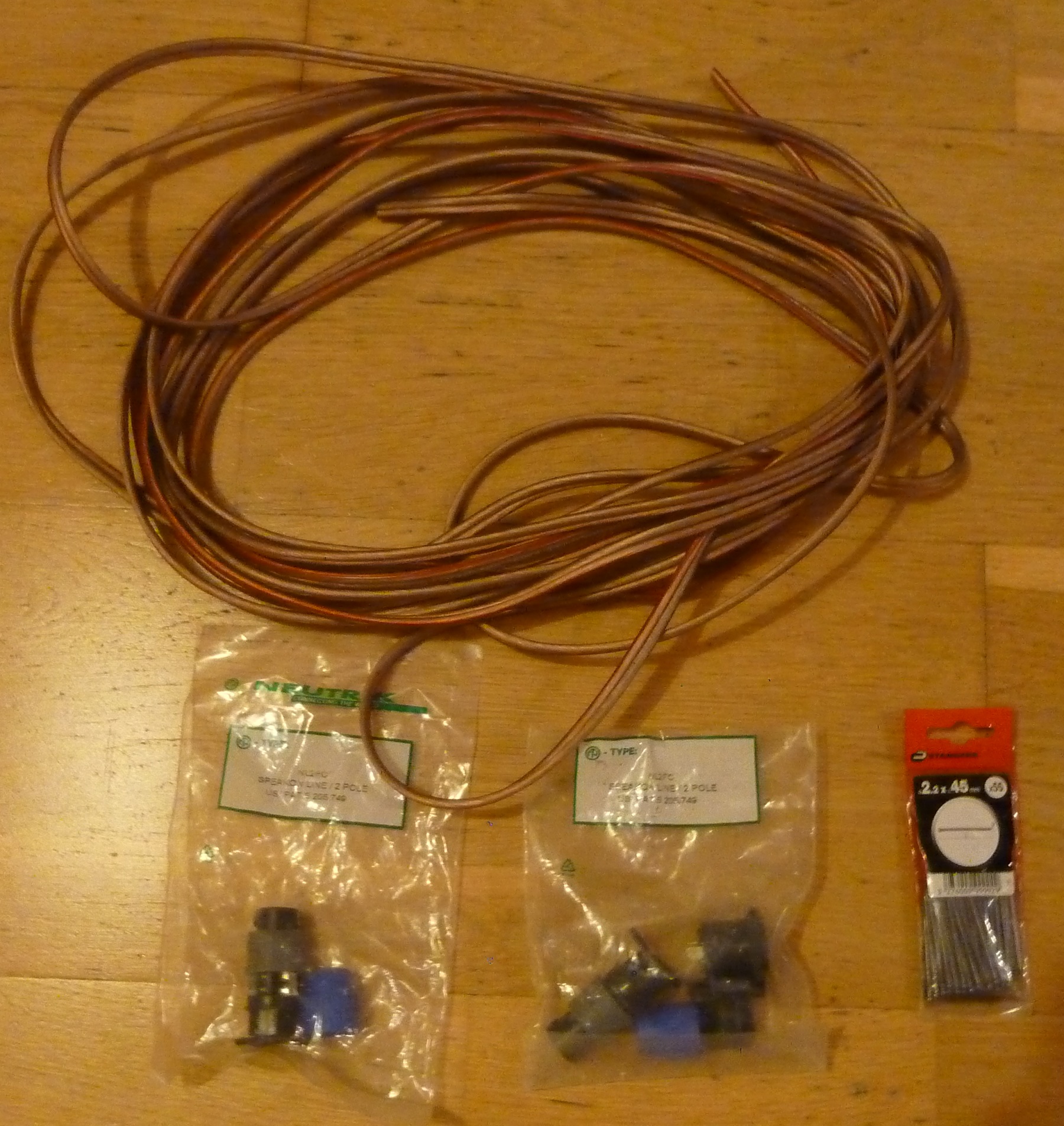 Les câbles en 4mm2, les speakons et une boite de clous 2.2 x 45 mm (100 U)